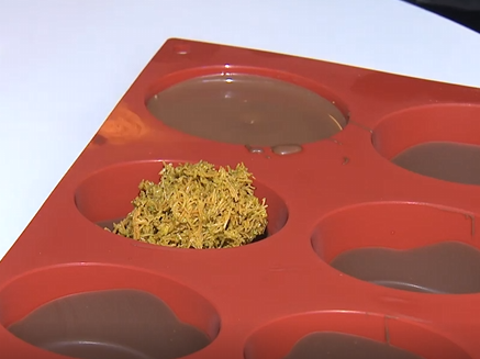 초콜릿을 한 입 베어 무니 연두색 크림이 흘러나옵니다.