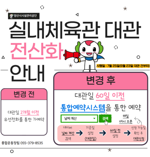 저자가 안내한 양산시 통합 예약 시스템에 대해 추가 사항을 전달하도록 하겠습니다.