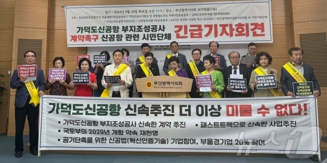부산 시민단체들이 가덕도 신공항의 부지조성 공사에 대한 시공사 선정을 조속히 진행할 것을 강력히 촉구하고 나섰습니다. 가덕도허브공항시민추진단을 비롯한 여러 시민단체들은 8월 20일 오전 부산시의회에서 기자회견을 열고, 국토교통부가 가덕도 신공항의 2029년 개항을 목표로, 올해 말까지 공사에 착수할 수 있도록 부지조성 공사 계약을 신속하게 체결해야 한다고 요구했습니다.