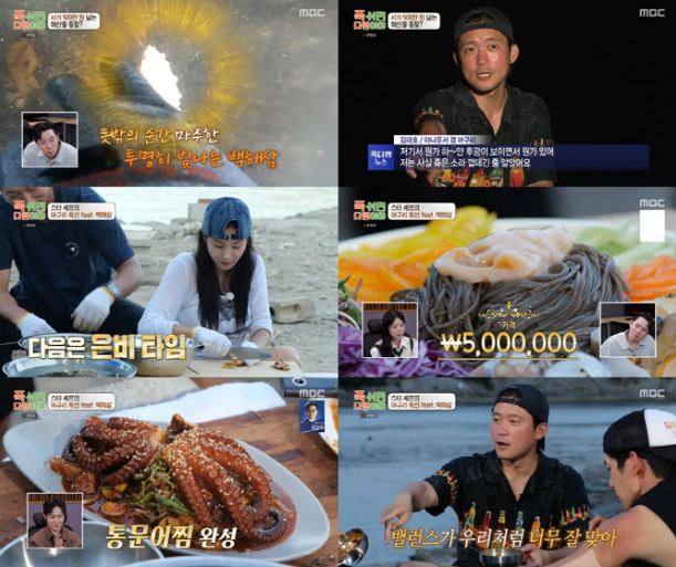 ‘머벤져스’는 ‘잠수부의 날’을 맞아 비장한 각오로 바다에 입수했습니다. 박준형은 즉시 소라를 잡았고, 김남일은 문어를 잡으며 활기를 더했습니다. 김대호는 금어기에도 불구하고 대왕 문어를 잡아내며 그동안의 아쉬움을 풀었습니다.