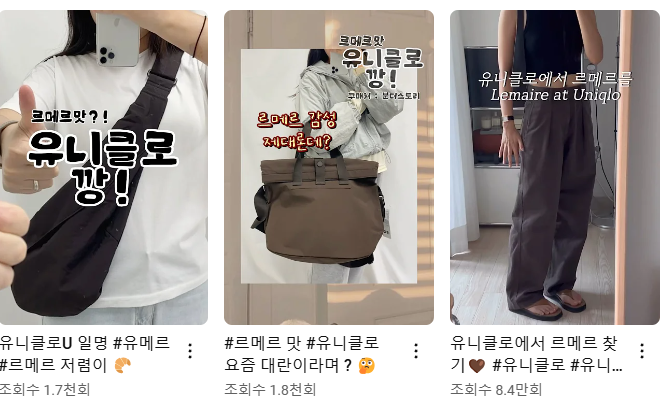 다이소뿐만이 아닙니다. 유니클로는 ‘르메르맛’이라는 별명을 얻으며 르메르 스타일을 저렴한 가격에 선보여 큰 인기를 끌고 있습니다. 유튜브나 틱톡 같은 SNS에서는 명품 화장품과 저렴이 제품을 비교하는 콘텐츠가 쏟아져 나오고 있고, 니치 향수와 비슷한 향을 가진 바디 제품이나 루이스폴센 디자인을 모방한 조명 등이 화제가 되고 있습니다. 젊은 세대는 합리적인 소비를 하면서도 만족감을 얻고자 하는 욕구가 강하기에, 듀프는 큰 매력으로 다가옵니다.