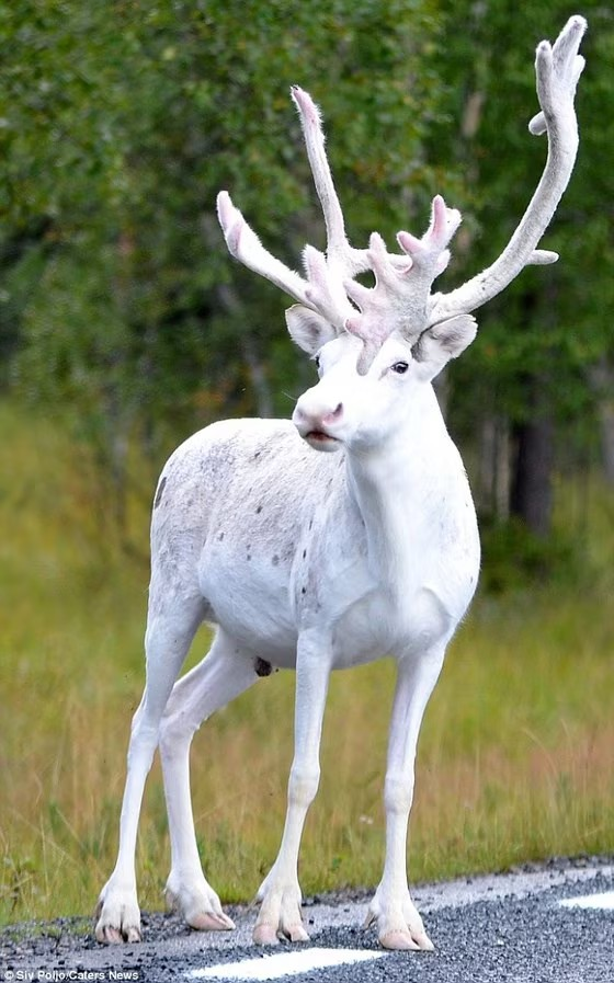일반적인 갈색 사슴과 달리 눈부신 순백의 털을 지닌 것이 특징입니다.