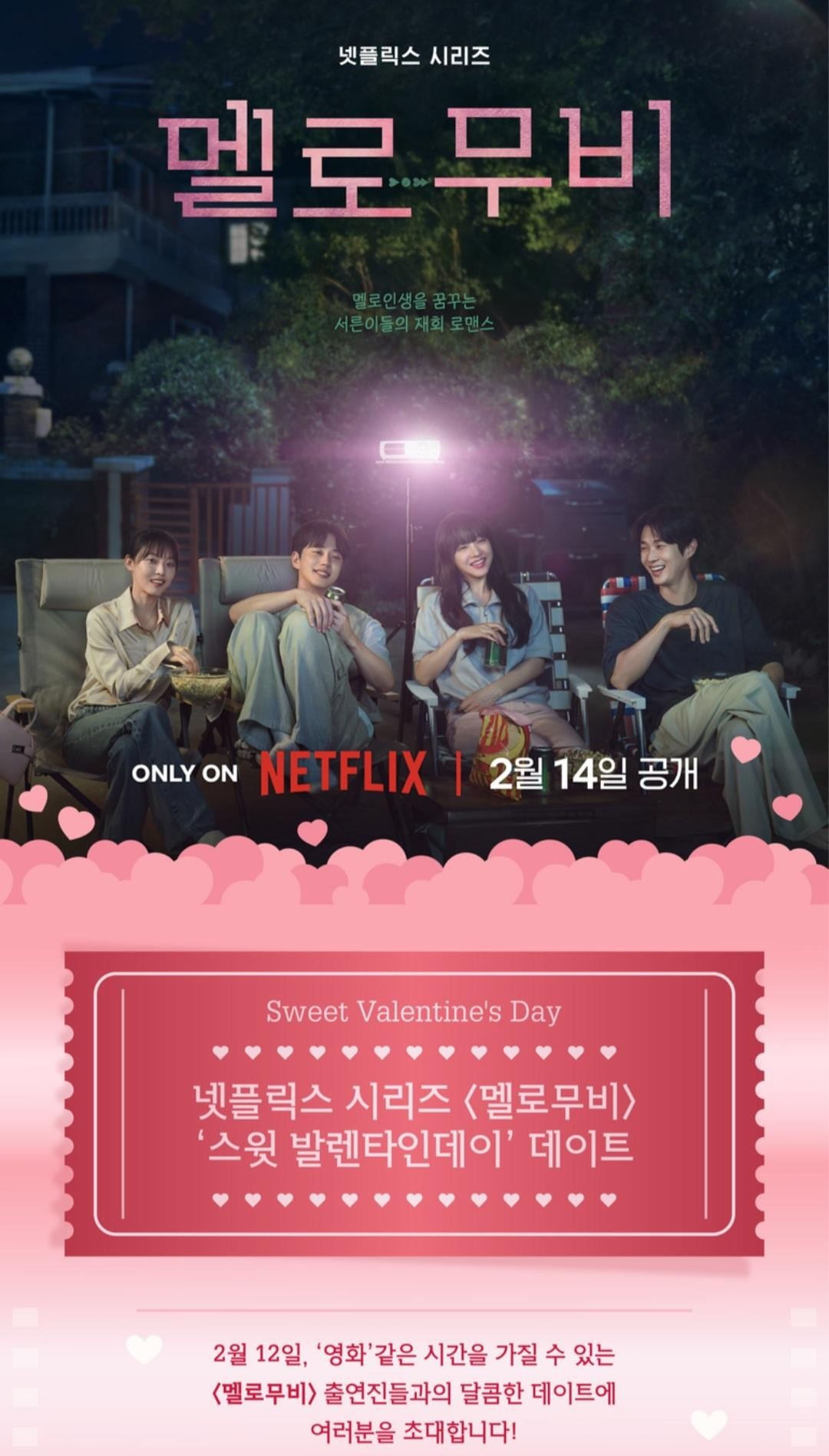넷플릭스 오리지널 **‘멜로무비’**가 2025년 2월 14일 공개되었습니다. 단순한 로맨스를 기대하고 본다면 실망할 수도 있지만, 청춘의 불안과 성장, 그리고 사랑과 이별을 깊이 있게 그려낸 작품이었습니다. 가벼운 멜로드라마를 기대했다면 예상과 다를 수 있지만, 인생의 다양한 감정을 조명하는 ‘영화 같은 드라마’를 찾는다면 만족할 수 있는 작품입니다.