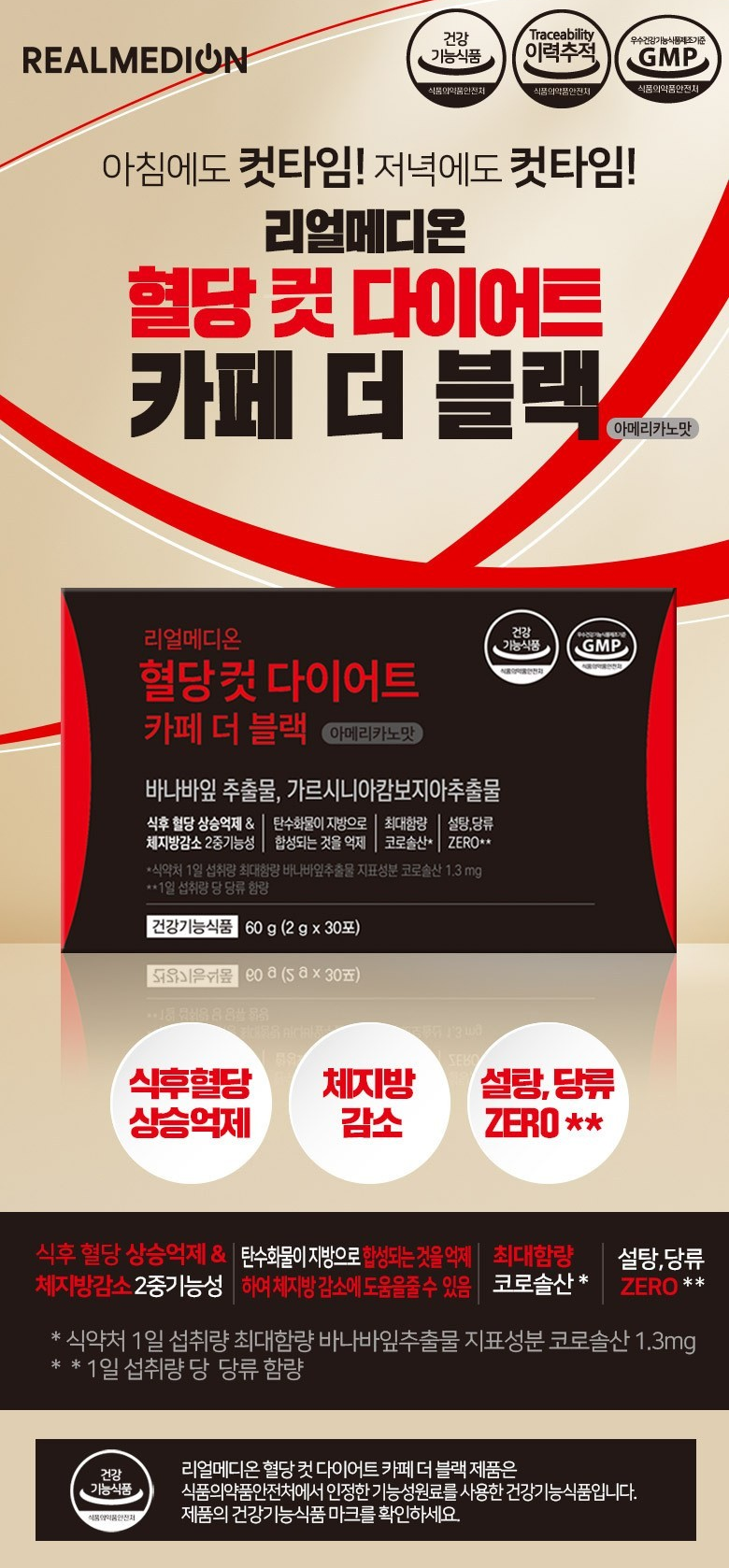 리얼메디온 혈당컷 다이어트 카페 더 블랙 아메리카노맛 설탕당류ZERO 바나바잎 가르시니아캄보