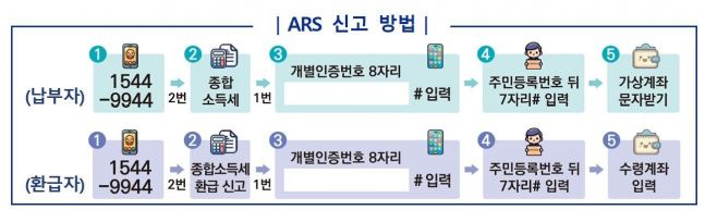 모두채움 안내문을 받은 납세자는 ARS 전화(1544-9944) 한 통으로 간편하게 신고를 마칠 수 있으며, 공제항목 추가 등 수정사항이 있는 경우에는 홈택스 또는 손택스에 접속하여 수정·제출할 수 있다. ARS 전화 신고 후에는 소득세 신고가 정상적으로 접수되었음을 알려드리는 문자메시지가 발송되며, 납부할 세액이 있는 납세자는 가상계좌를 문자로 받을 수 있다.