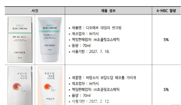 → 4-MBC 성분 5% 함유 (기준: 4% 이하)
