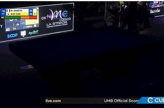벨기에 앤트워프시 AED 스튜디오에서 열린 3쿠션월드컵 16강전 도중 발생했습니다.