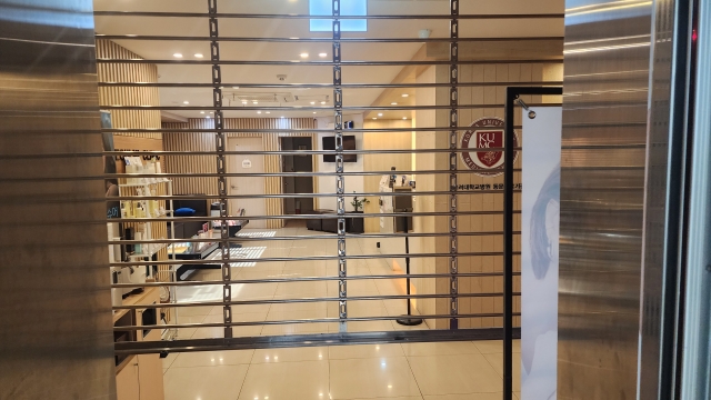 18일 서울 관악구 휴진을 한 의원 앞 철문이 내려가 있다. 한웅희 기자