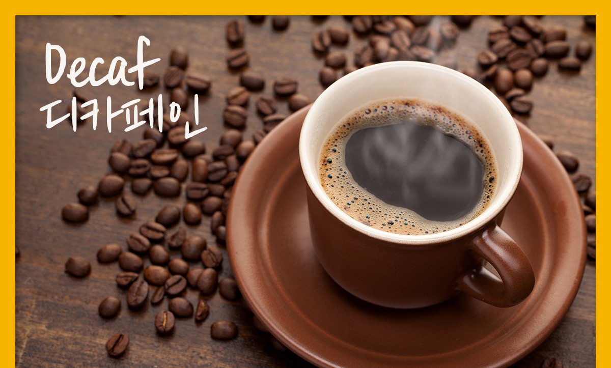 디카페인(decaffeinated) 커피는 생두에서 카페인을 97% 이상 제거한 커피입니다.